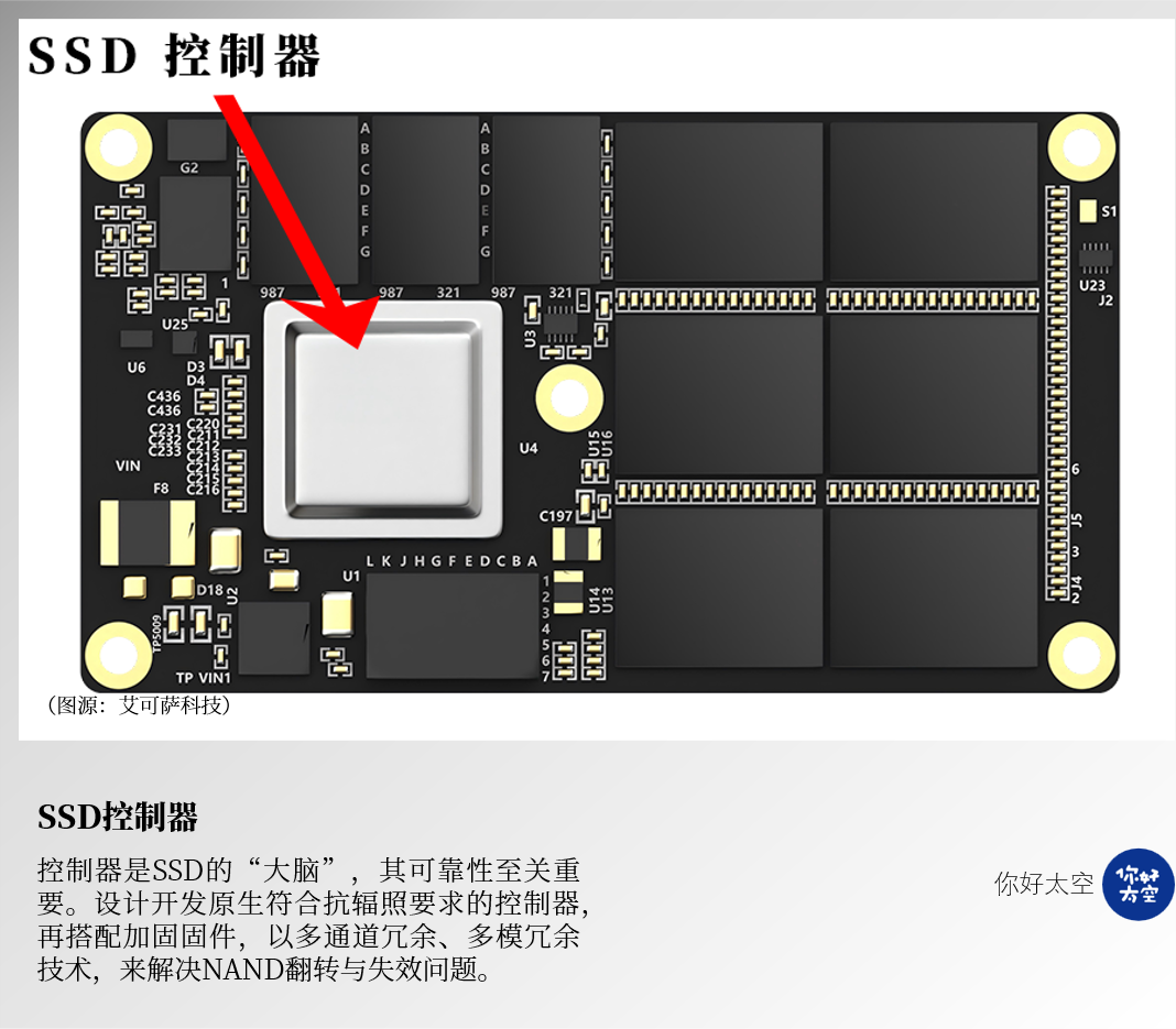 控制器是SSD的“大脑”,其可靠性至关重要。设计开发原生符合抗辐照要求的控制器,再搭配加固固件,以多通道冗余、多模冗余技术,来解决NAND翻转与失效问题。