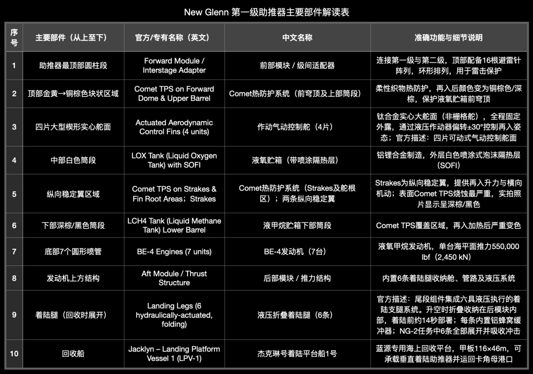 ●金色战袍挑战未来这枚名为Never Tell Me the Odds(别告诉我概率)的助推器成功回收与返回,不仅标志蓝色起源成为继SpaceX后第二家实现轨道级助推器海上着陆的公司,更证明了Comet TPS等创新技术的可靠性。随着飞行次数增加,这套金色战袍会保留新格伦每一次飞行痕迹,记录多次太空旅行的故事。未来,新格伦将承担更多国家安全、商业卫星及月球任务,一级助推器能否稳定回收、快速复用,Comet TPS 是核心拼图之一。它不是最张扬的技术,却可能是新格伦迈向高频复用的关键。