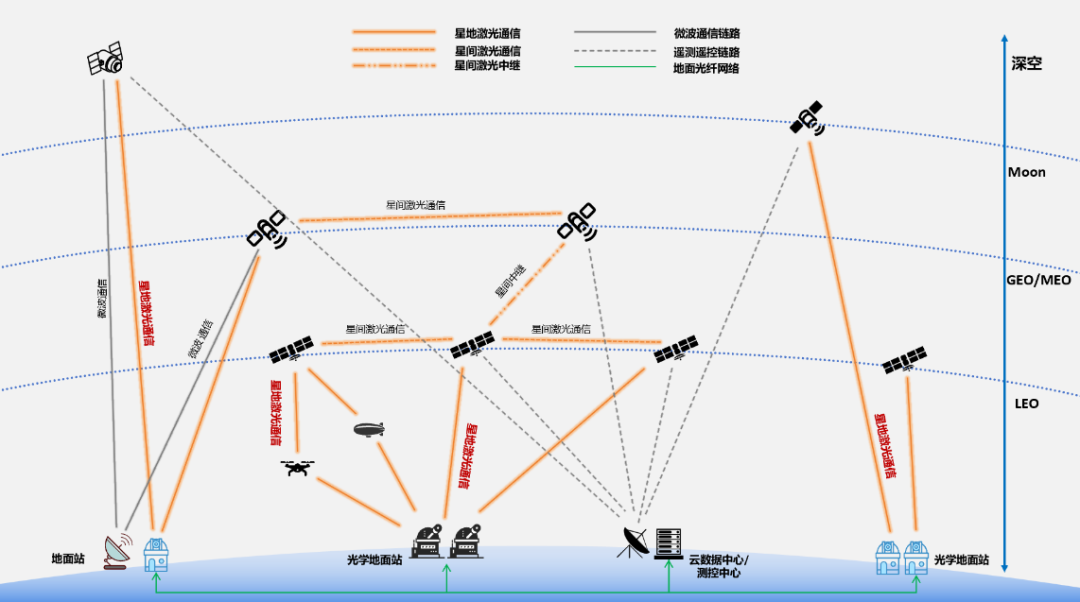 图2 “空天地一体化”网络星地激光通信典型应用场景