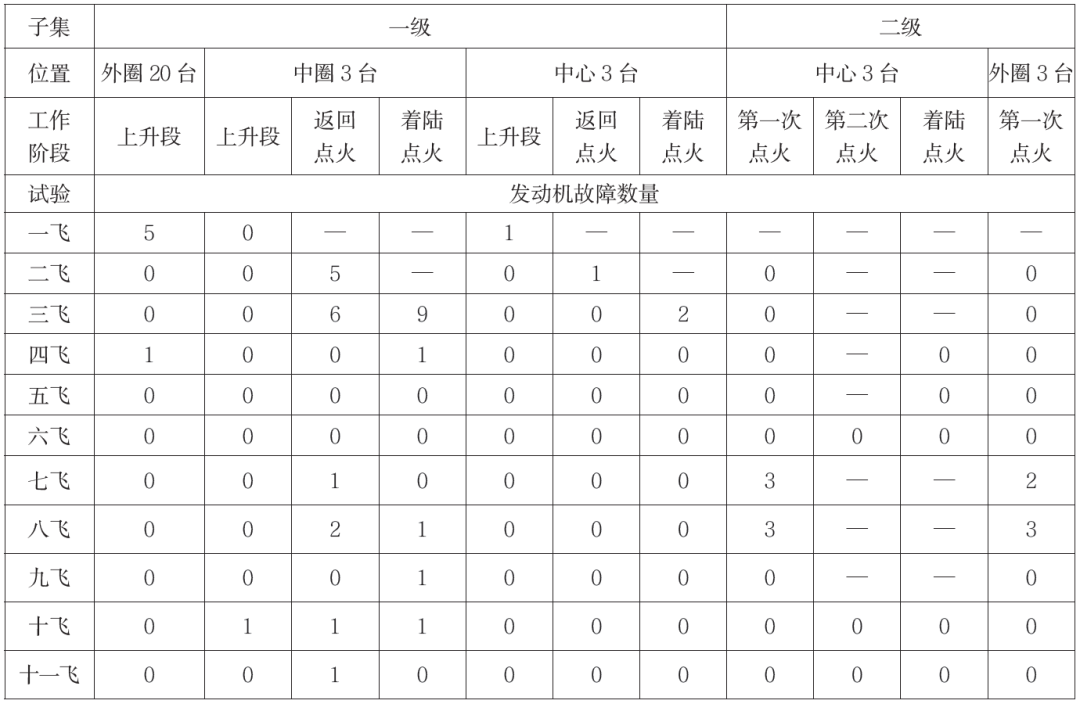 “超重-星舰”采用多发动机并联方案,其冗余重构能力得到验证。一方面,SpaceX通过加强底部热防护、提升发动机舱吹除能力、增加发动机间隔离措施等方法解决了一级33台并联的复杂力热环境耦合问题,能够有效隔离单机故障,不会引发连锁反应,提升并联可靠性。另一方面,大量发动机并联使二代“超重-星舰”的起飞推重比达到1.42,远超土星-5(Saturn - 5)火箭的1.19,因此即便少量发动机发生故障,也可通过冗余推力实现飞行剖面重构,保证任务成功。例如:在二代5次试飞中,虽然一级都遭遇1~2台发动机故障的情况,但均未影响一级主要任务目标的完成。