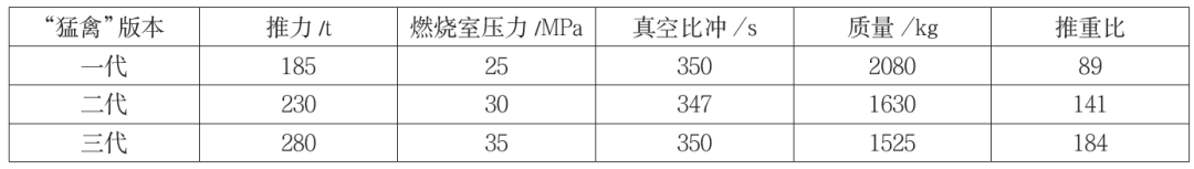 “猛禽”发动机作为推进系统的关键,其单机性能和可靠性得到大幅提升。历次飞行试验过程中,在上升、返回和着陆三个不同工作阶段,发动机正常工作数量持续提升(见表3)。前期试飞均未能进行到二级发动机工作阶段,到后期二级发动机实现全程正常工作;前期一级出现故障的发动机最多超过10台,而最后一次飞行中仅1台出现单次故障;第六次、第八次和第十一次飞行中,某台发动机出现故障后,在后续工作阶段仍能恢复启动和工作,也是其可靠性提升的重要体现。与此同时,“猛禽”发动机持续迭代使性能得到大幅提升(见表4),并通过大量地面试车验证工作可靠性,例如二代“猛禽”单次地面试车最大时长达897s,三代“猛禽”发动机从2024年以来试车累计时长达4×104s。