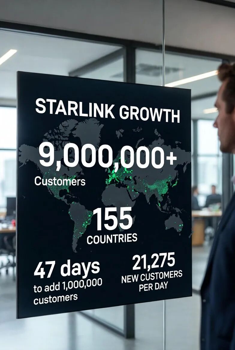 Starlink用户增长速度一路飙升——2025年8月用户突破700万;11 月突破800万;12月最终站上900万的里程碑。