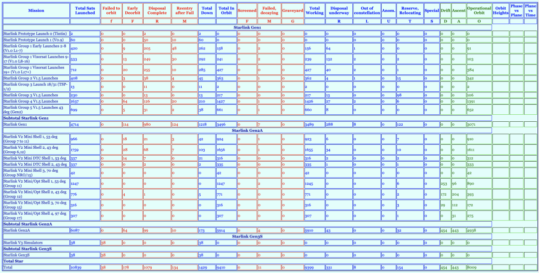 截至2025年12月21日,SpaceX累计发射10839颗Starlink,在轨卫星9410颗,活跃卫星9399颗,正式投入运营8009颗,不仅构成全球最大卫星互联网星座,更是史上最大规模的卫星星座。
