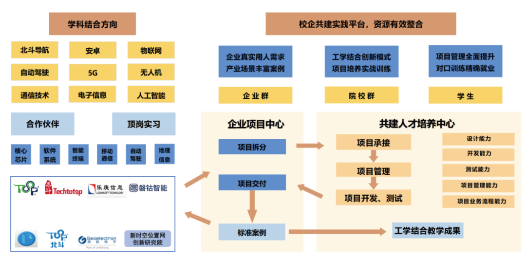 构建“四共三融”产教融合新模式:在资源共建方面,牵头组织产业链上下游企业与院校深度协作开发实训设备及课程体系,例如联合广东工业大学编撰《卫星导航技术联培方案》,实现教育资源与产业需求的精准对接。人才共育环节创新实施“双导师制”,由企业工程师与高校教师组成联合指导团队,全程参与学生项目培育,强化实践能力与行业认知的双重塑造。过程共管机制引入企业标准化评价体系,将职业资格认证与课程学分体系深度绑定,确保人才培养质量与岗位要求同频共振。成果共享机制则推动学生实训成果向产业应用转化,如联合广东工业大学团队研发的“捕捉跟踪基带算法开发”和“多源融合开发平台”已成功落地3所院校,形成教学实践与产业价值的良性循环。