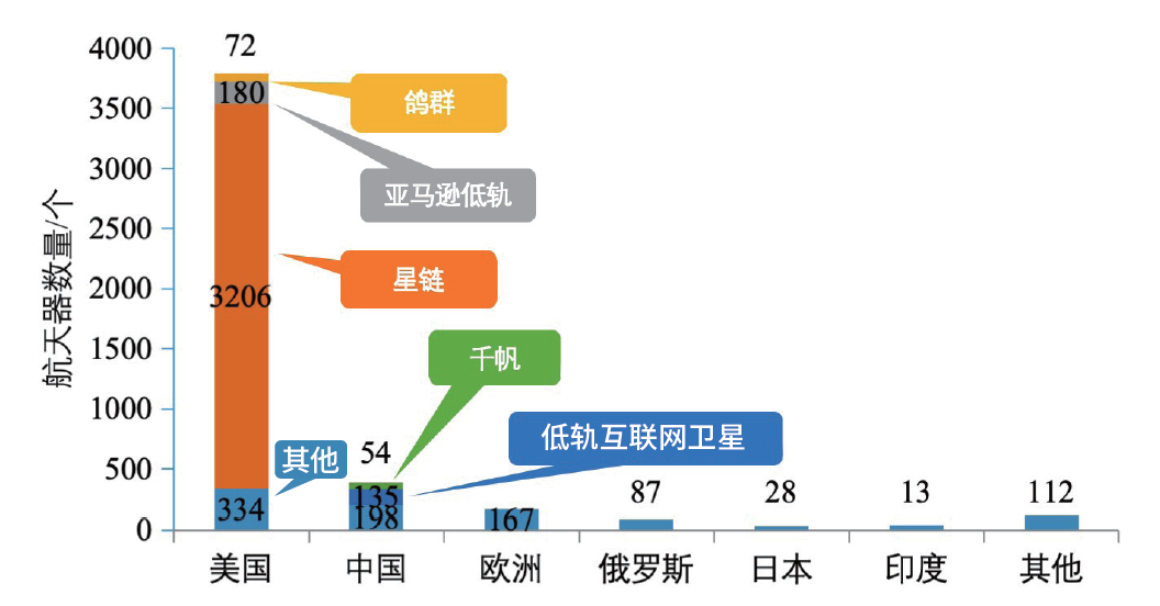美国在轨卫星数量大幅领先,