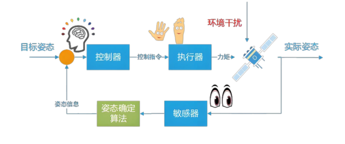 一旦知道了目标姿态和当前姿态,姿态控制系统就会计算两者之间的误差(即姿态偏差)。然后,控制算法(如PID控制、滑模控制等)会根据这个误差计算出所需的控制力矩,并驱动执行机构产生相应的动作,消除姿态误差,使卫星从“当前姿态”机动到并保持“目标姿态”。简单来说,整个过程就是一个闭环反馈控制:测量当前姿态→与目标姿态比较→计算误差→生成控制指令→执行机构动作→改变姿态→再次测量...