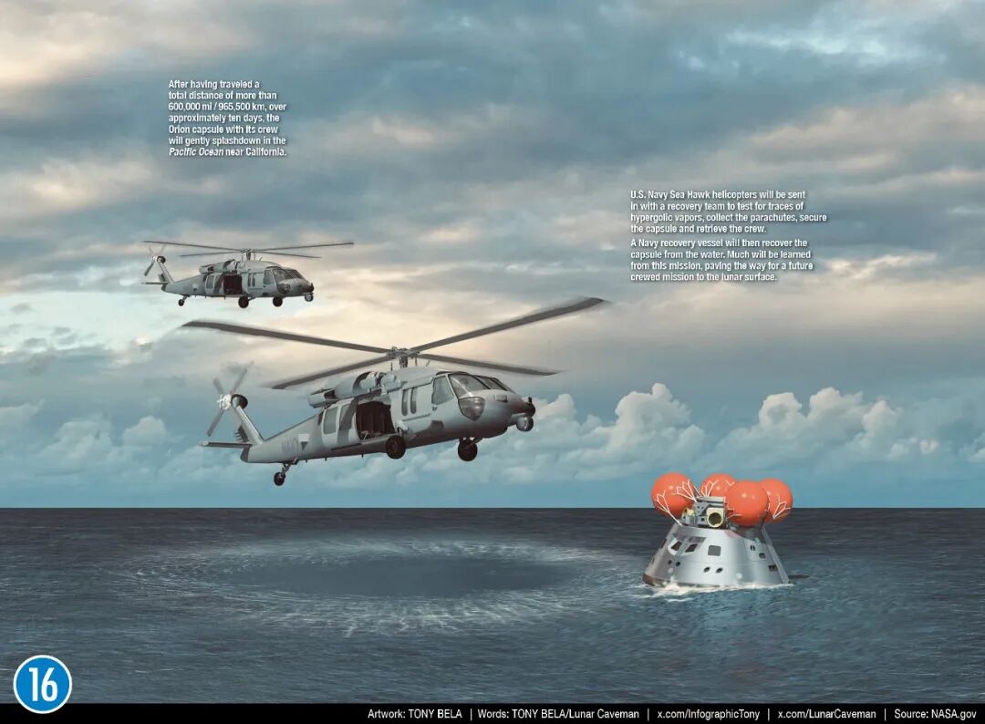 美东时间4月10日飞船溅落后,乘组将成为首批由美国海军「圣安东尼奥级」两栖运输舰海上搜救的宇航员。此前阿波罗时代靠航母和直升机分别回收指令舱和人员。这次宇航员将留在舱内,直到舰船将完整号飞船完全包裹在井甲板里,安全性大幅提升。