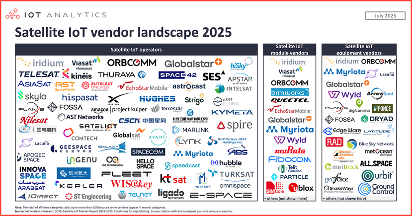 另外,IoT Analytics发现卫星物联网供应商市场将进一步分散化。2024年之前,7家卫星物联网运营商市场份额达到80%以上,而随着星链、Skylo Technologies、Sateliot等公司的进入,卫星物联网运营商市场面临更加激烈的竞争,市场格局将进一步分化。
