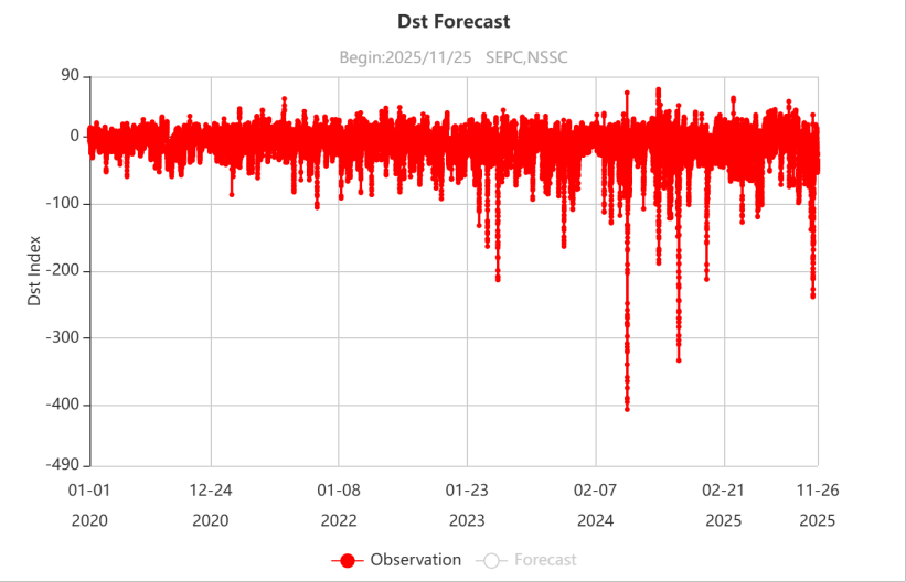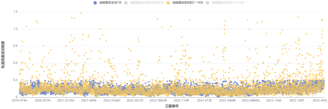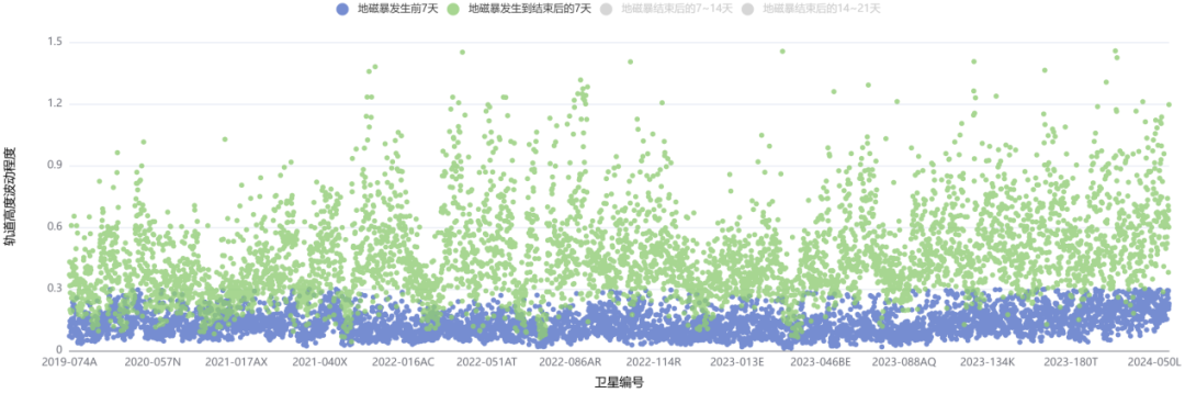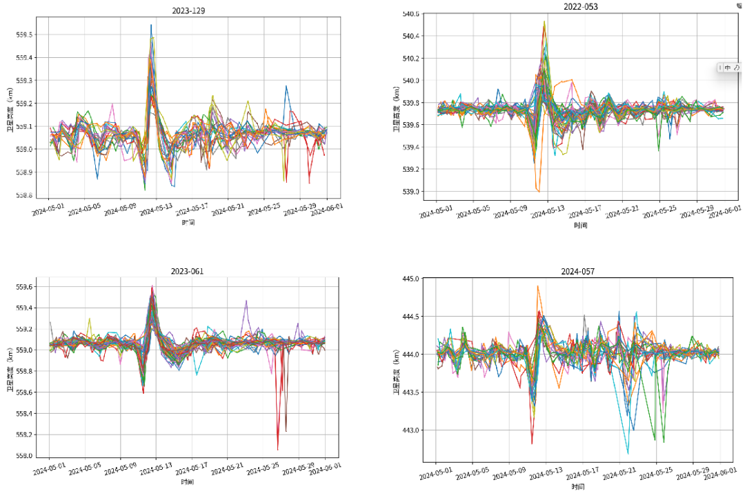 极端地磁暴引发数千颗星链卫星轨道变化:数据统计与现象分析 文 | 林翊钧、徐帆江、刘帅军、谭晶、秦明宇(中国科学院软件研究所 ) 据美国国家航空航天局(NASA)估计,第25个太阳活动周期于2019年12月正式开始,太阳活动逐渐增强,约在2025年达到极大期,随后逐步减弱至2030年前后结束。此期间堪称卫星轨道阻力研究的“黄金时代”——人类历史上首次在最强太阳活动期间,同步运营着规模空前的低轨巨型星座。当地磁暴发生时,太阳风能量会大量沉积至地球磁层与热层,引起高层大气显著升温膨胀,从而增大低轨卫星所承受的大气阻力、加速其轨道衰减。 根据中国科学院空间环境预报中心发布的地磁暴dst指数数据,自2020年以来,全球已累计发生5次特大地磁暴事件。结合同期卫星轨道数据开展相关研究,对研判巨星座系统在极端空间环境下面临的风险、制定应对策略具有重要意义。对此,依托本团队自研的天智巨星座研究平台,本文聚焦于2024年5月10至12日发生的近二十年来最强地磁暴事件,选取该事件发生前一周处于在轨稳定状态(轨道半长轴变化<0.3km)的5205颗星链卫星为研究对象,分析了其在地磁暴期间的轨道变化情况,主要结论为: 图1 中国科学院空间环境预报中心发布2020-2025地磁暴dst指数变化曲线 地磁暴后,大量星链卫星 出现轨道高度变化加剧现象 本文中,星链卫星的轨道高度由“轨道半长轴-地球半径(6378.137km)”计算得出,半长轴数据源自SpaceTrack公开发布的两行轨道根数(TLE)。据此标准筛选,地磁暴发生前一周,轨道高度总变化<0.3km的在轨星链卫星共计有5205颗,分布在350~580km之间,倾角以43°、53°、70°和97°为主。 图2 地磁暴前处于在轨稳定状态的5205颗星链卫星轨道高度和倾角分布 在地磁暴发生至结束后的7天内,大量星链卫星出现轨道高度变化加剧的现象,平均变化幅度较地磁暴前提升0.43km。其中,有84.34%(4390颗)的变化幅度提高了1倍;1.86%(97颗)的变化较剧烈、超过2km。然而,在地磁暴结束后的7~14天内,绝大多数卫星的轨道状态重新趋于稳定,有88.74%(4619颗)的轨道高度变化幅度恢复至不超过0.3km,该比例在随后的一周内进一步提升到了92.12%(4795颗),具体如图3所示。这些数据表明,特大地磁暴发生后,星链系统出现了普遍且显著的轨道高度变化影响,不过这种现象只是短时性的,绝大多数星链卫星的轨道状态都会逐渐回归稳定。 表1 5205颗星链卫星在各阶段的平均轨道高度变化幅度 图3 5205颗星链卫星在地磁暴发生前后的轨道高度变化情况对比 地磁暴后星链卫星先降轨后抬升, 升降轨幅度与版本及轨道位置相关 经数据初判与机理研究,在特大地磁暴发生后,星链卫星轨道高度变化加剧的主要原因在于——“卫星先因地磁暴引起的大气阻力增大而出现快速被动降轨,随后SpaceX为维持轨道高度采取了主动抬升操作,以应对持续的空间环境影响”。几乎所有批次星链卫星的轨道高度变化曲线均展示出了异于平常的“先下降、后上升、再下降”情况。 图4 地磁暴发生后各批次星链卫星轨道高度变化曲线 与地磁暴发生前的平均水平相比,原本在轨稳定的5205颗星链卫星在地磁暴后的三天内,轨道高度先出现平均最大0.2km的下降,随后出现平均最大0.25km的上升。其中,有86.88%(4522颗)的星链卫星在2024年5月11日,即地磁暴发生后的第二天,轨道高度降至极小值,随后这些卫星中有93.92%(4247颗)在第三天(2024年5月12日)轨道高度就升至了极大值,平均时间间隔仅为0.91天。这些数据表明,地磁暴对星链卫星轨道高度的影响迅速而显著,为应对轨道衰减,SpaceX在系统层面采取了快速、批量的主动升轨操作,在24小时内就将大量星链卫星抬升至略高于原工作轨道的高度,以抵御持续的地磁扰动。 图5 星链卫星在地磁暴发生三天内的最大降轨幅度(相对于地磁暴前基准) 图6 星链卫星在地磁暴发生三天内的最大升轨幅度(相对于地磁暴前基准) 经统计,在倾角、版本相同情况下,轨道高度越低的星链卫星,降轨幅度普遍越大(可对比表3的1-4、5/6、7-10行),这一现象符合物理认识:轨道高度越低,地磁暴引起的大气阻力就越强,从而导致更显著的轨道衰减;在倾角、轨道高度相同情况下,版本更高的星链卫星出现的降轨幅度越大(可对比表4的1/2、3-5行),这与不同版本卫星在整星质量、结构设计及迎风面积等方面的差异有关。相应地,针对不同轨道位置和版本的卫星,SpaceX所采取的机动升轨幅度也呈现差异。 表2 版本、倾角相同情况下,星链卫星升降轨幅度与轨道高度相关性对比 表3 轨道高度、倾角相同情况下,星链卫星升降轨幅度与版本相关性对比 依托自研的天智巨星座研究平台,本文针对24年5月特大地磁暴事件,对原本处于轨道稳定状态的5205颗星链卫星展开了分析。研究表明,该次地磁暴导致大量星链卫星的轨道高度变化加剧,相关过程集中发生于地磁暴爆发后的三天内,具体表现为:星链卫星先因大气阻力增大而被动快速降轨,随后SpaceX迅速在24小时内完成了大批量卫星的升轨操作。同时,星链卫星升降轨幅度与其版本及轨道位置存在强相关性,表现为版本越高或轨道越低,其轨道高度总变化幅度越大。 本研究揭示了极端空间环境对低轨巨型星座的系统性宏观影响,同时反映出SpaceX具备全星座快速轨道维持的应急响应能力。值得关注的是,SpaceX曾在地磁暴期间公开表示其星链服务正承受巨大压力并出现