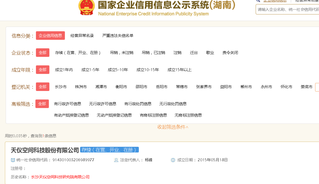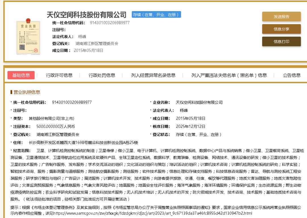 信息来源:国家企业信用信息公示系统信息、你好太空等