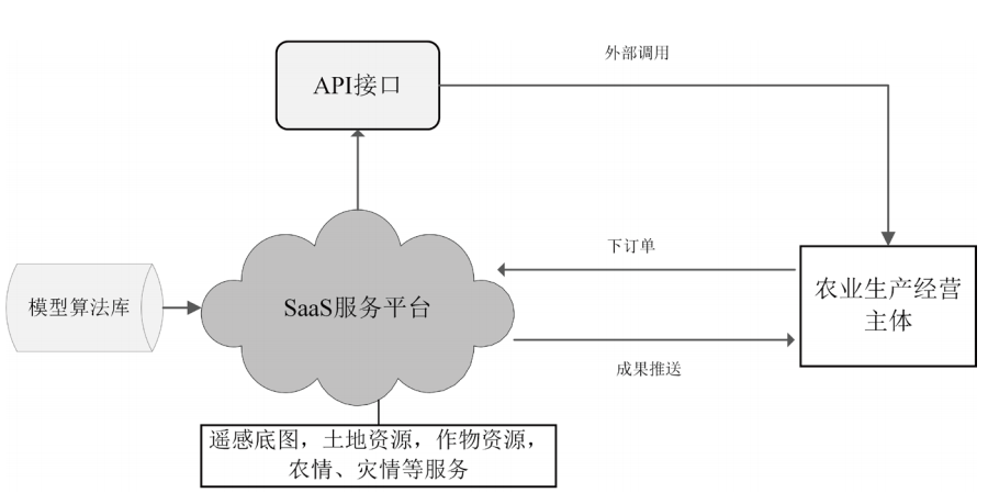 农业生产经营主体通过两种方式接收和查阅订购的遥感服务,一种是SaaS服务平台,另一种是API接口调用,如图1所示。