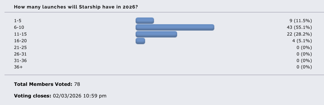 其次,星链并未进入所谓的饱和期。相反,随着V2版本持续部署、V3版本逐步推进,SpaceX对中等与重型运力的需求依然保持高位。再叠加商业客户、政府任务对猎鹰体系的高度路径依赖,猎鹰在2026年维持180–200次发射区间,已不再是激进预测,而更像是自然延伸。