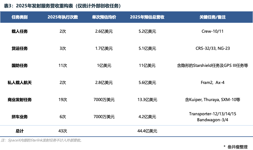 2025年,SpaceX的发射服务贡献约44亿美元营收。