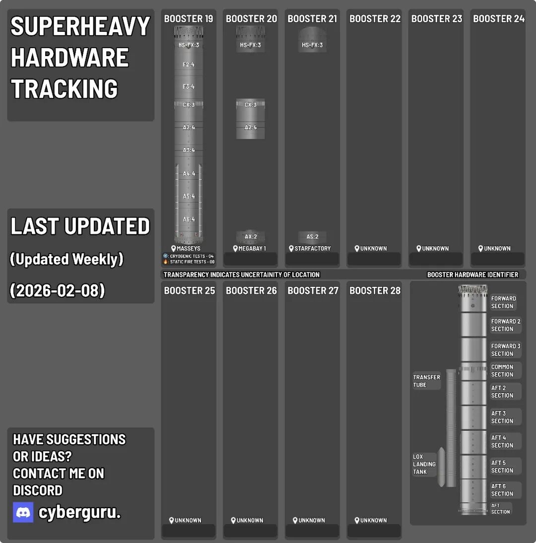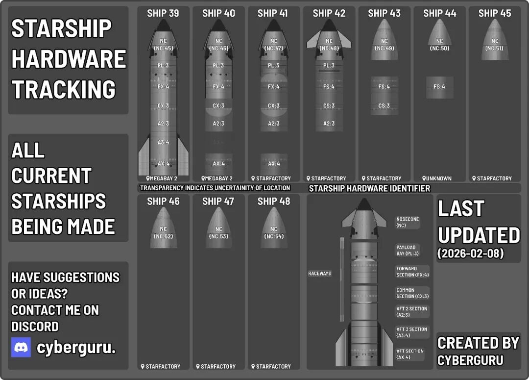 就在B19经受低温考验的同时,星舰基地另一端并未停歇。飞船S40前襟翼与舱段已进入巨湾2号,即将安装;B20助推器后段与共用穹顶正在并行制造;星舰工厂内部呈现明显的多线程生产状态。这一节奏本身就说明,SpaceX已不再围绕单一飞行调配资源,而是在为V3阶段连续飞行序列做准备。