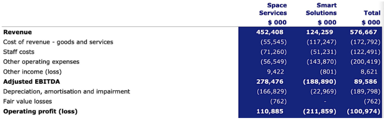 在航天服务业务方面,该部门贡献了公司78%的业绩,2025年营收增长6%,达到4.524亿美元。该部门经调整后的息税折旧摊销前利润(EBITDA)达到创纪录的2.785亿美元,利润率高达62%;而Smart Solutions部门同期的调整后EBITDA则亏损1.89亿美元。