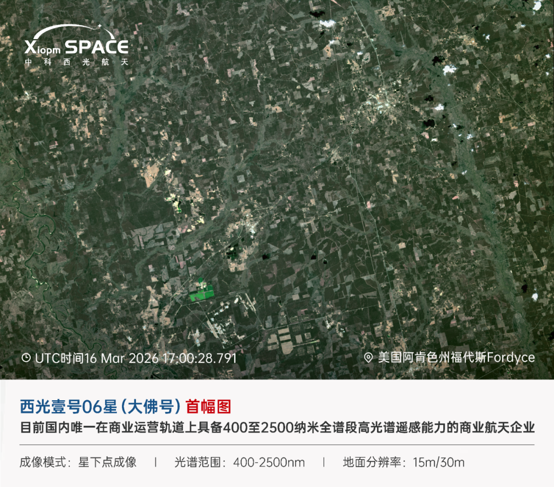 2026年3月16日12时12分,酒泉卫星发射中心,由快舟十一遥七运载火箭将“西光壹号06星(大佛号)”精准送入预定轨道。目前,该卫星在轨24小时内地面中心已接收到首幅来自卫星的数据图。这颗由西安中科西光航天科技集团有限公司全自主研制的高光谱遥感卫星,并非一颗普通的“太空摄影师”,而是一双能读懂大地“光谱密码”的“智慧之眼”。