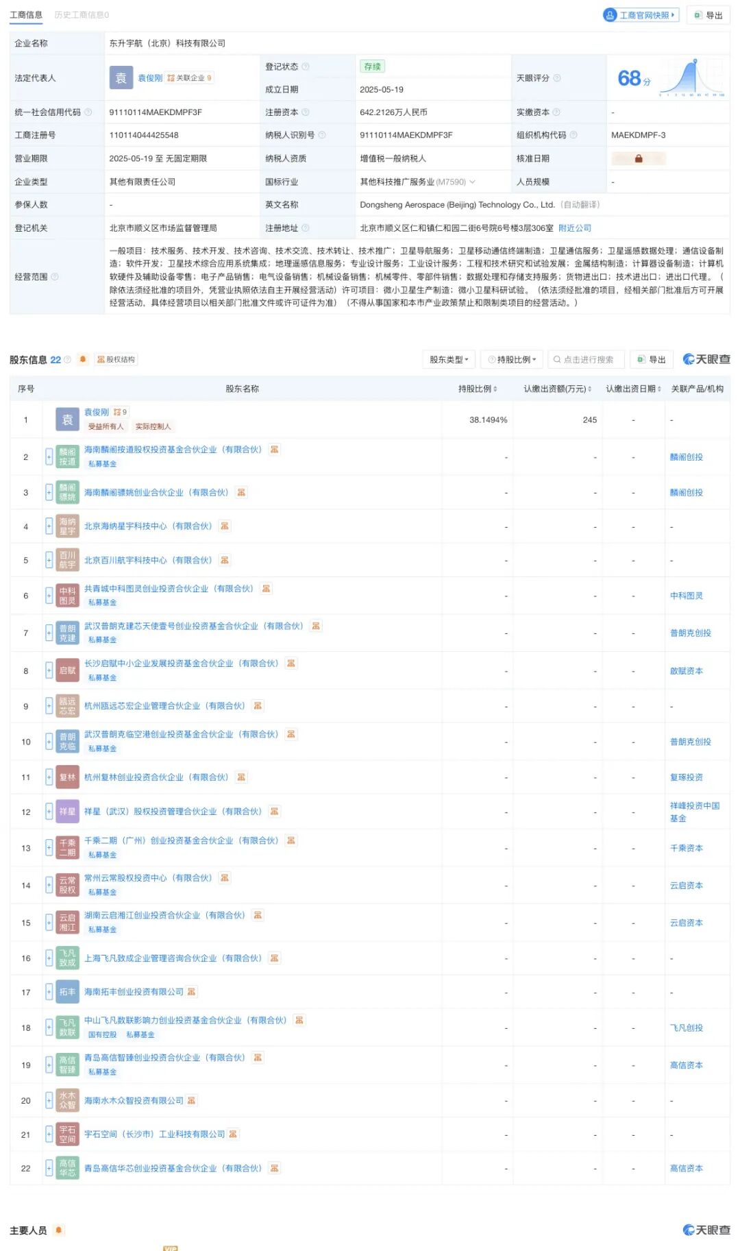 东升宇航完成新一轮融资,注册资本增至642万元,云启资本等多家机构及宇石空间产业资本入局,资金将用于卫星研制与核心技术开发。